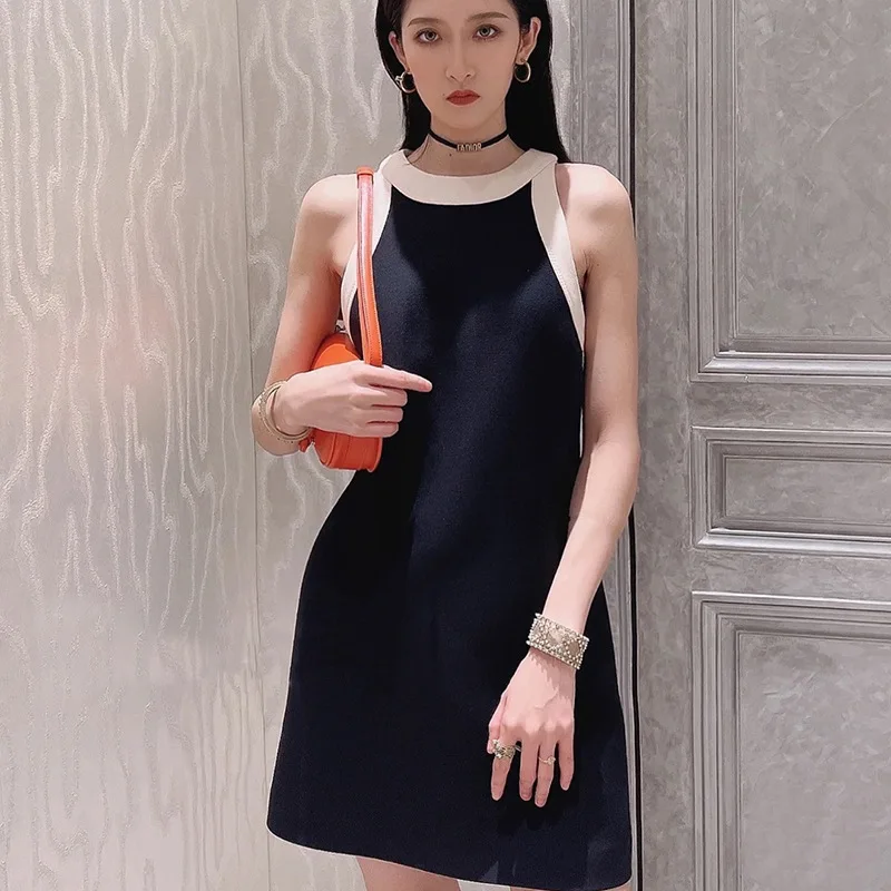 Женское Короткое платье без рукавов, винтажное свободное черное платье-трапеция с круглым вырезом, лето 2022