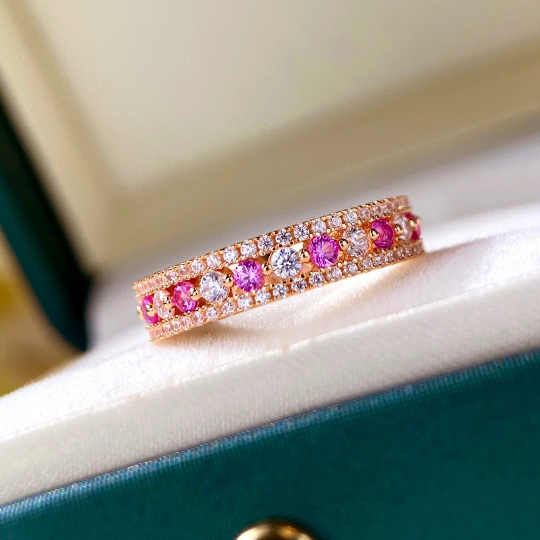 Женское Обручальное кольцо из серебра 925 пробы с розовым и фиолетовым фианитом