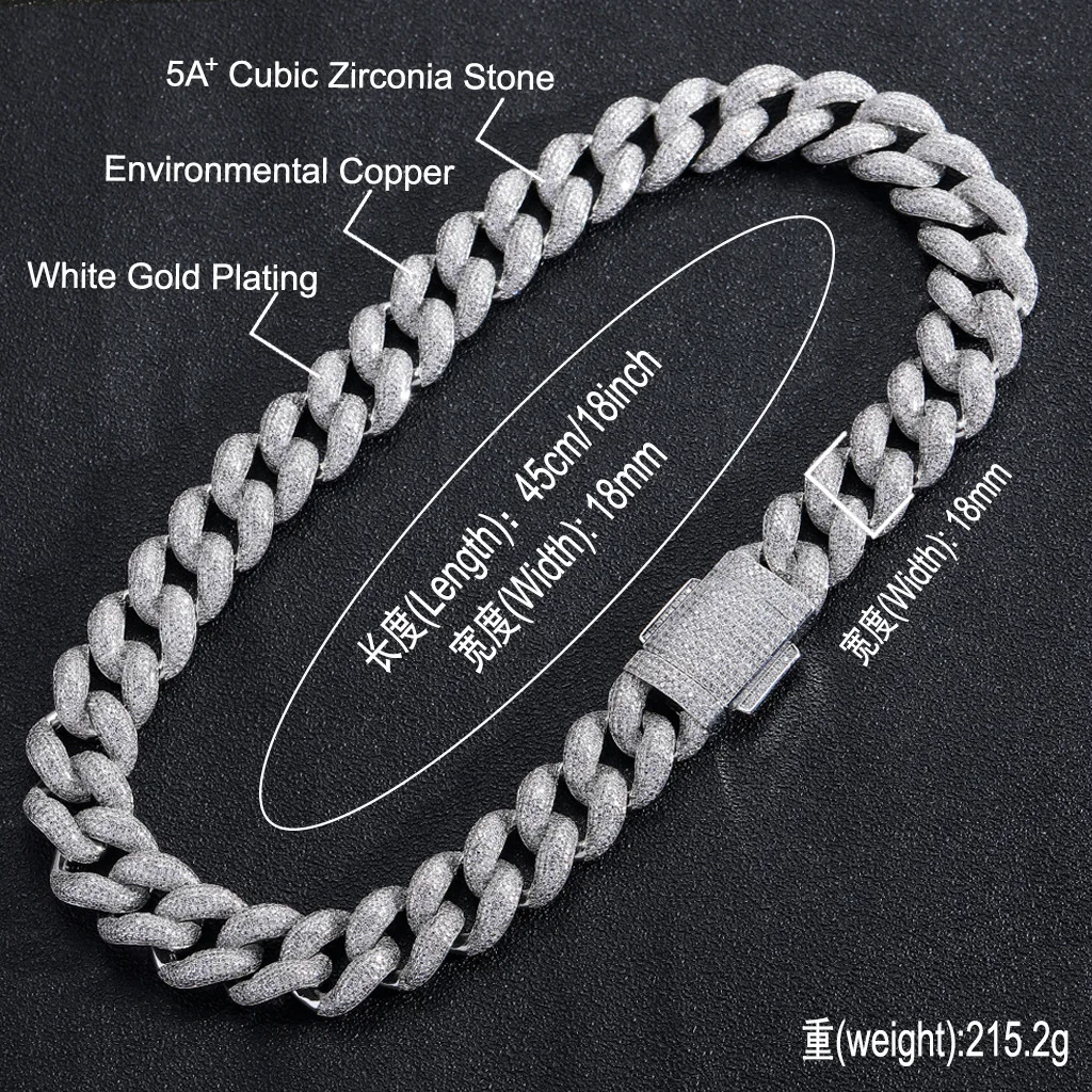 Женское Ожерелье из кубинской цепи, сверкающая цепочка с цирконом, 18 мм, бижутерия