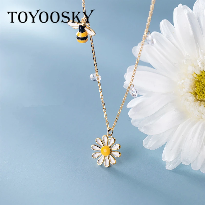 Женское Ожерелье-чокер из серебра 925 пробы, с Пчелкой, маргариткой и цветком