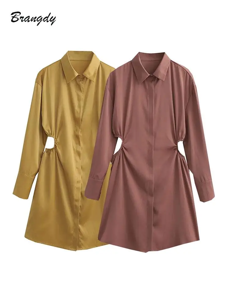 Женское Плиссированное Платье-рубашка с длинным рукавом, мини-платье с вырезами на талии, сарафан Y2k, 2022