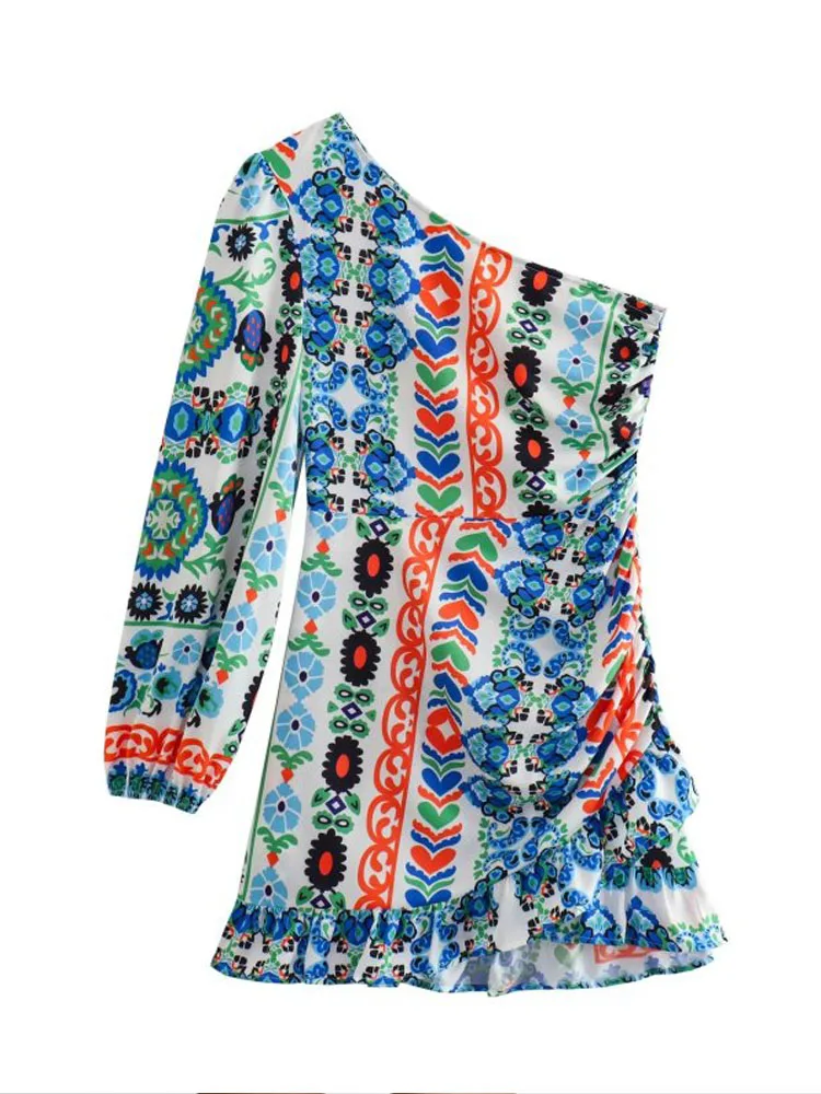 Женское Плиссированное мини-платье Kumsvag, элегантное асимметричное платье на одно плечо с модным принтом, одежда для улицы, лето 2023