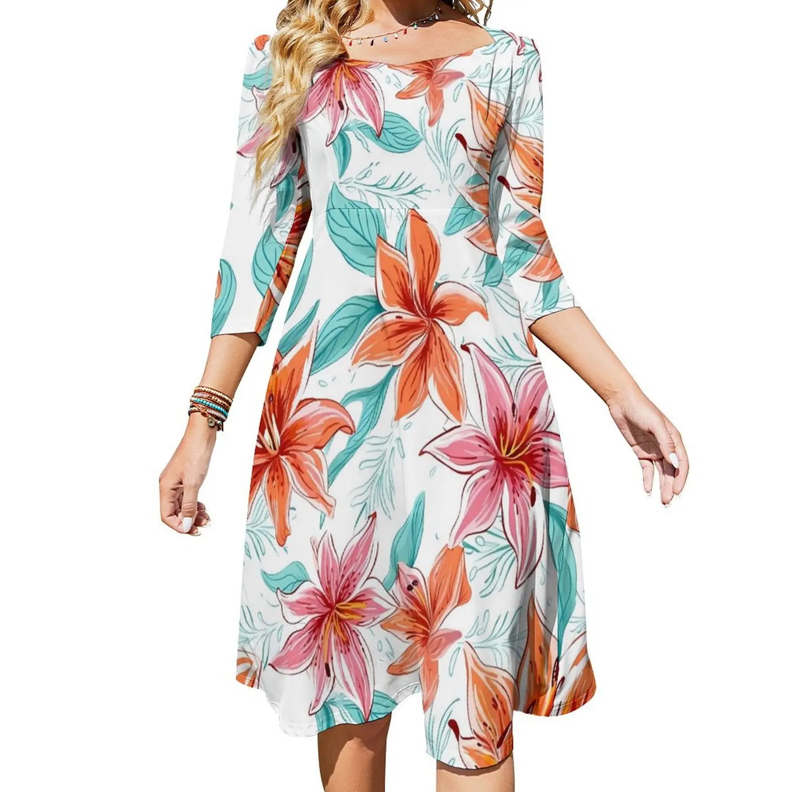 Женское Повседневное платье с цветочным принтом, розовое платье с бантом, большие размеры