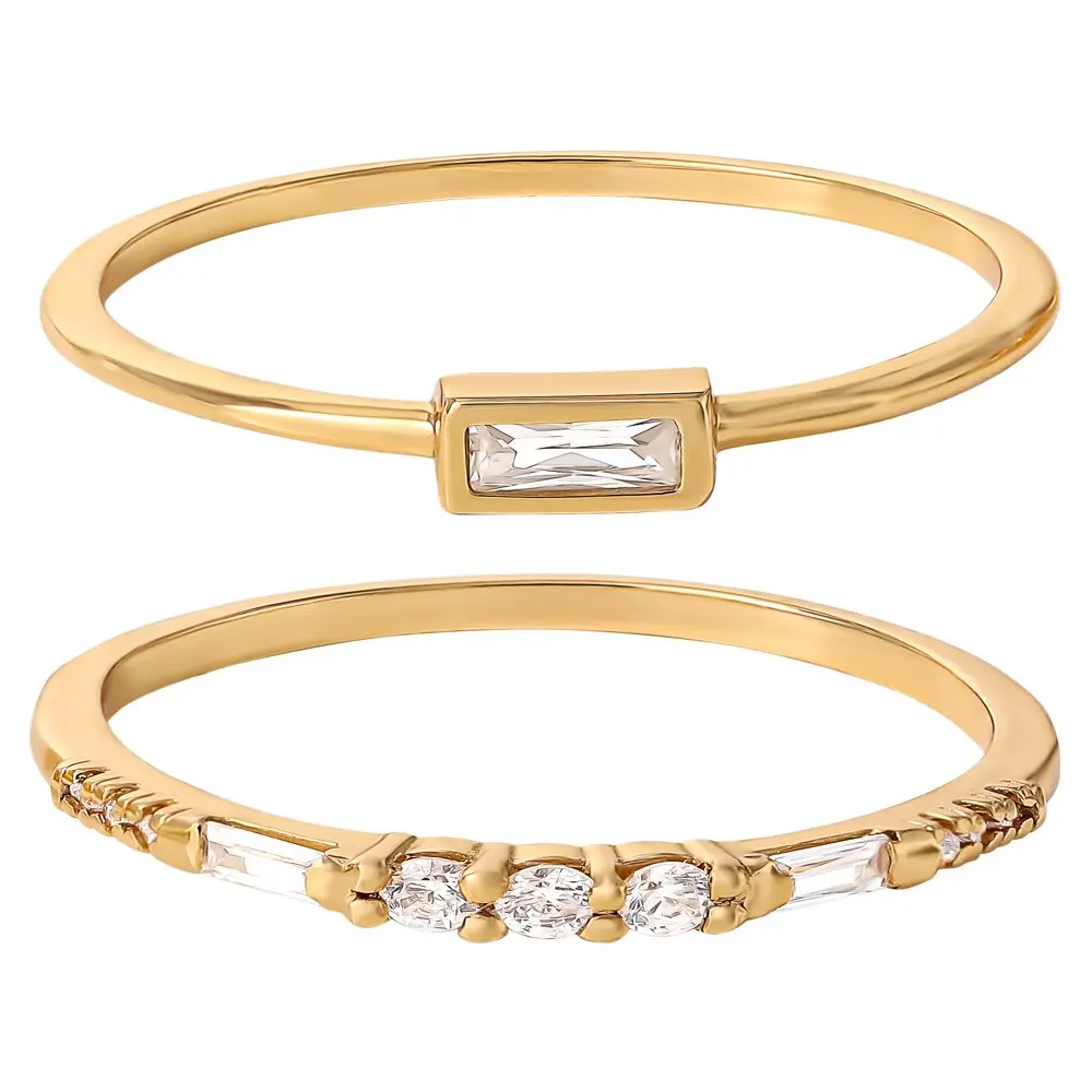 Женское Позолоченное серебряное кольцо с кубическим цирконием из 2 частей