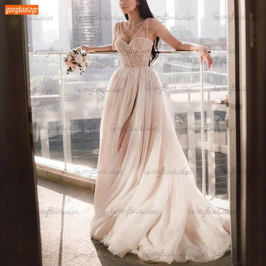 Женское Свадебное Платье, белое Платье в богемном стиле с кружевной аппликацией, ТРАПЕЦИЕВИДНОЕ Свадебное Платье, 2021
