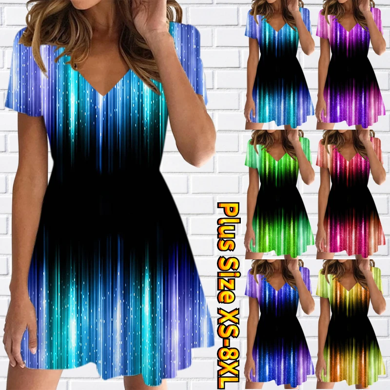 Женское Свободное платье с коротким рукавом, V-образным вырезом и принтом