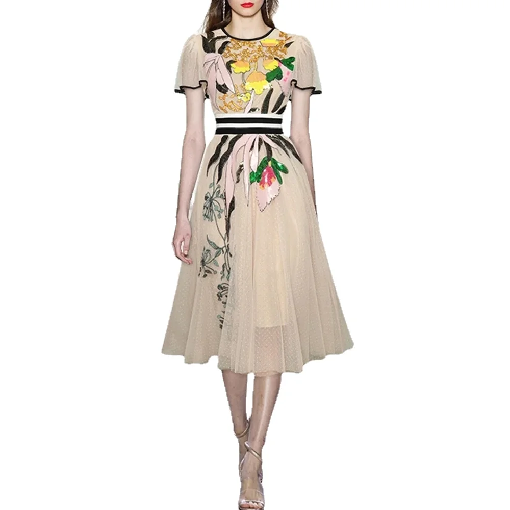 Женское Сетчатое платье-трапеция, приталенное платье в горошек, с рукавами-бабочками, с цветочной вышивкой, лето 2021
