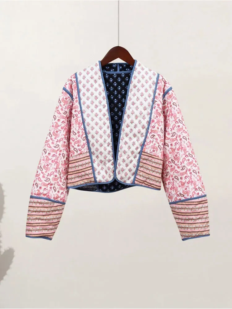 HH женское пальто с цветочным принтом, стеганое двустороннее пальто с длинными рукавами и открытой передней частью, куртки 2-в одной, осеннее винтажное уличное пальто