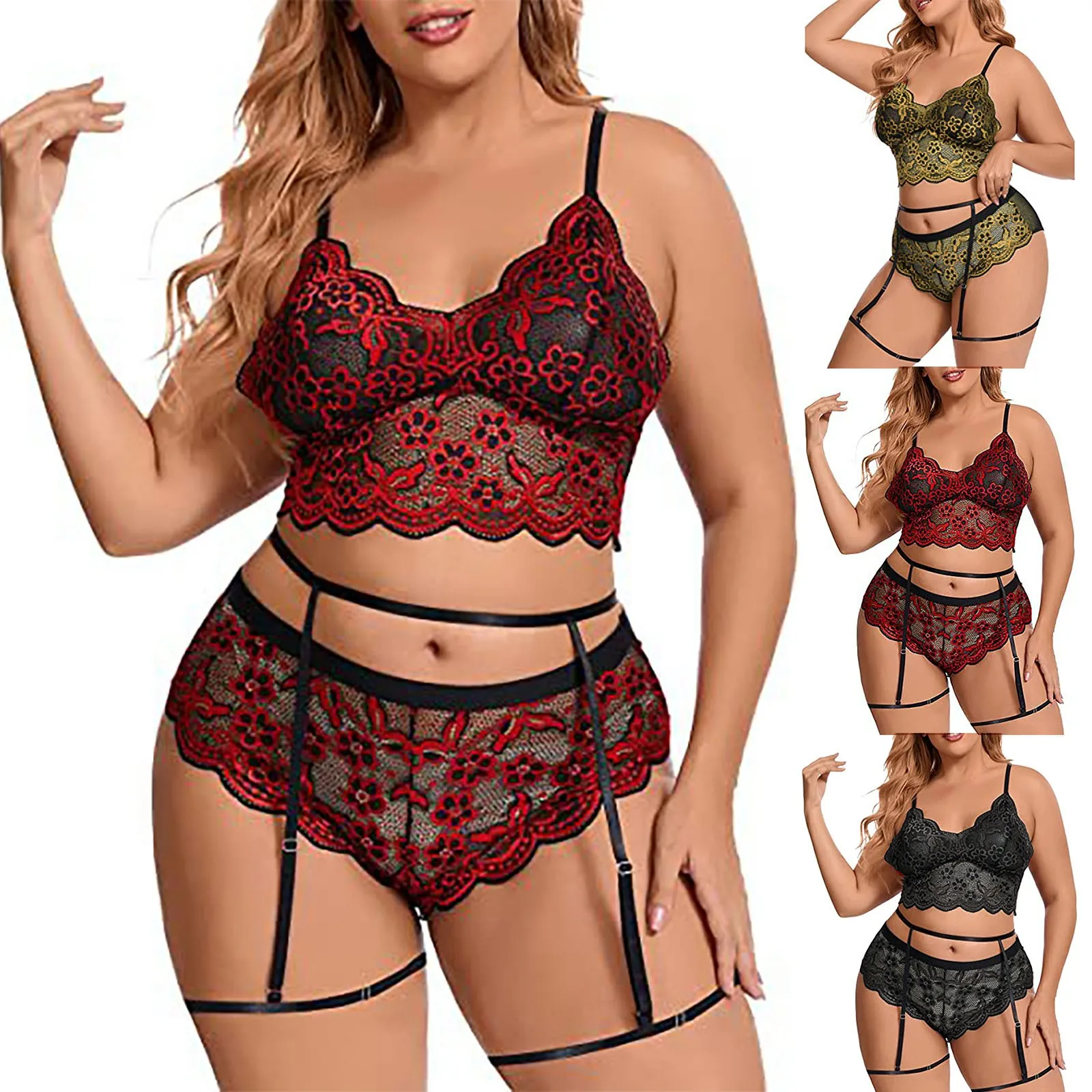 Женское Эротическое нижнее белье, кружевное нижнее белье с вышивкой из трех частей, костюм с разрезом, комбинация, порно, нижнее белье, чувст...