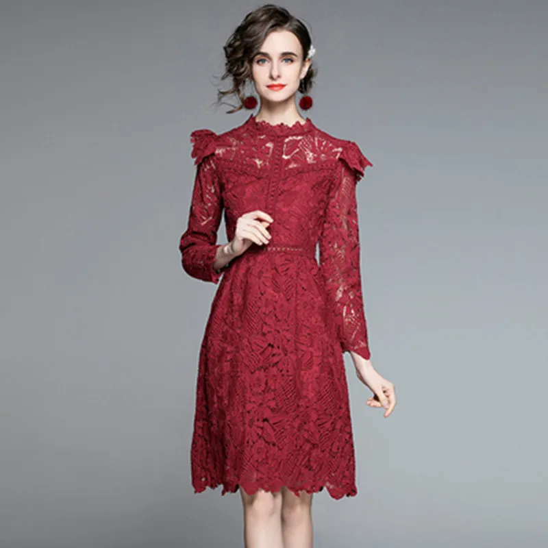 Женское ажурное кружевное платье Вечерние элегантное винтажное праздничное платье красного и розового цветов, весна 2019