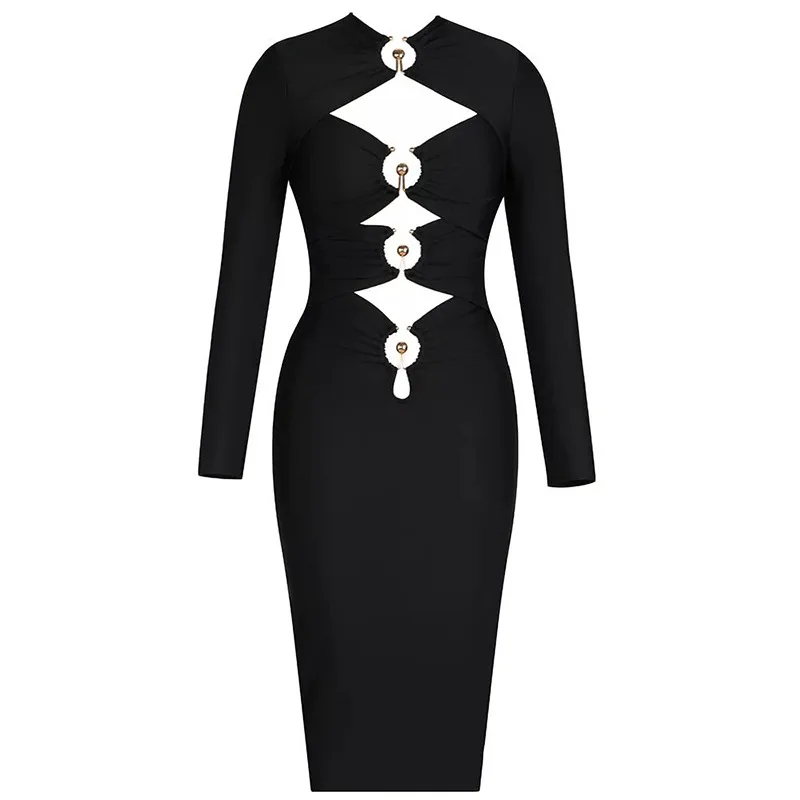 Женское ажурное платье средней длины в рубчик с рюшами и длинным рукавом