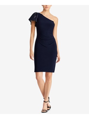 Женское асимметричное вечернее платье-футляр до колен RALPH LAUREN темно-синего цвета с пайетками, Navy
