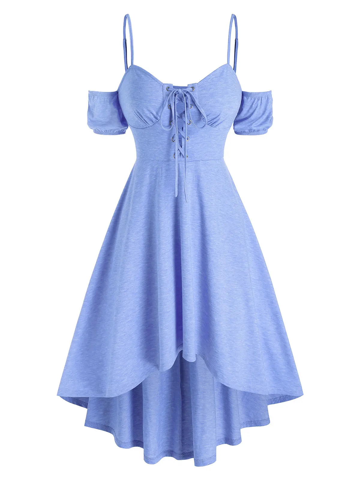 Женское асимметричное платье с открытыми плечами и высокой талией на шнуровке