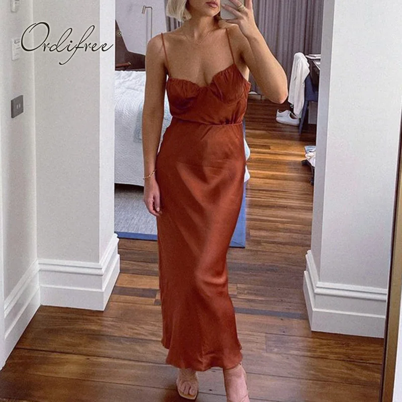 Женское атласное вечернее платье Ordifree, длинное винтажное платье-комбинация на бретелях-спагетти, лето 2023