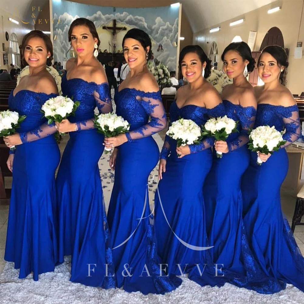Женское атласное платье-Русалка, элегантное платье синего цвета с аппликацией для гостей свадьбы