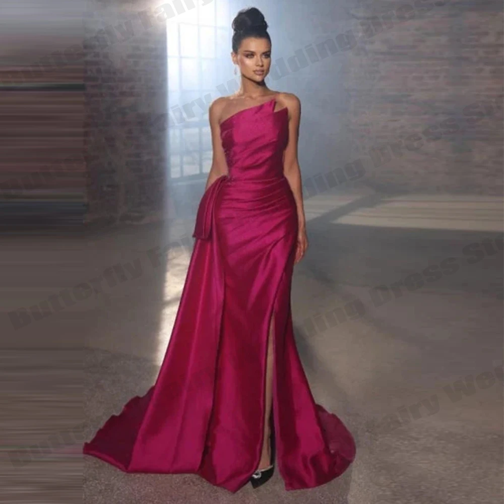 Женское атласное платье без рукавов, с открытыми плечами и разрезом сбоку