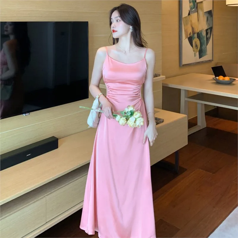 Женское атласное платье на бретелях-спагетти, без рукавов