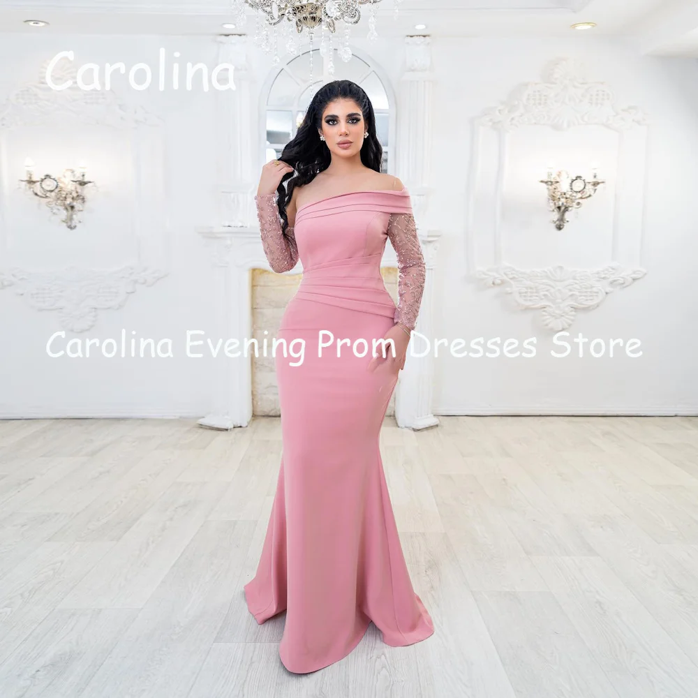 Женское атласное платье с юбкой-годе, открытыми плечами и оборками