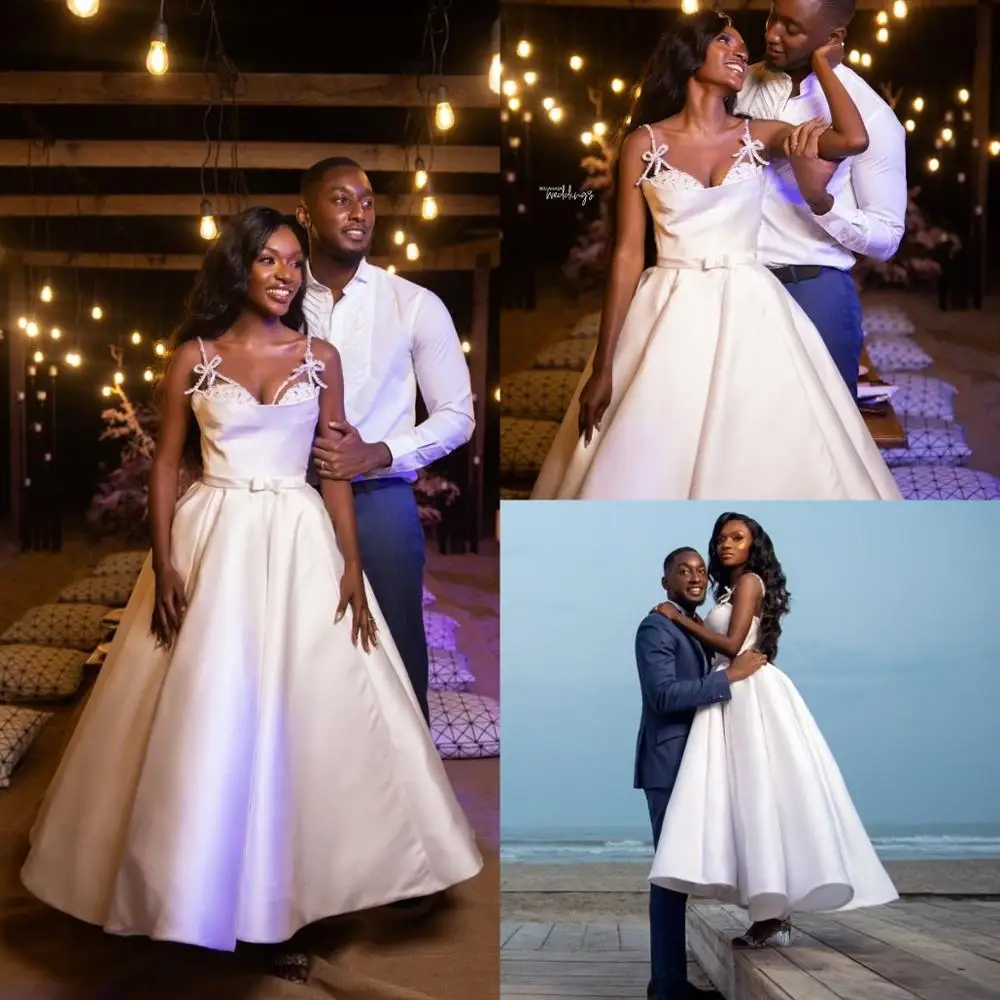 Женское атласное платье It's yiiya, белое пляжное свадебное платье до щиколотки с бантом и бисером на лето 2020
