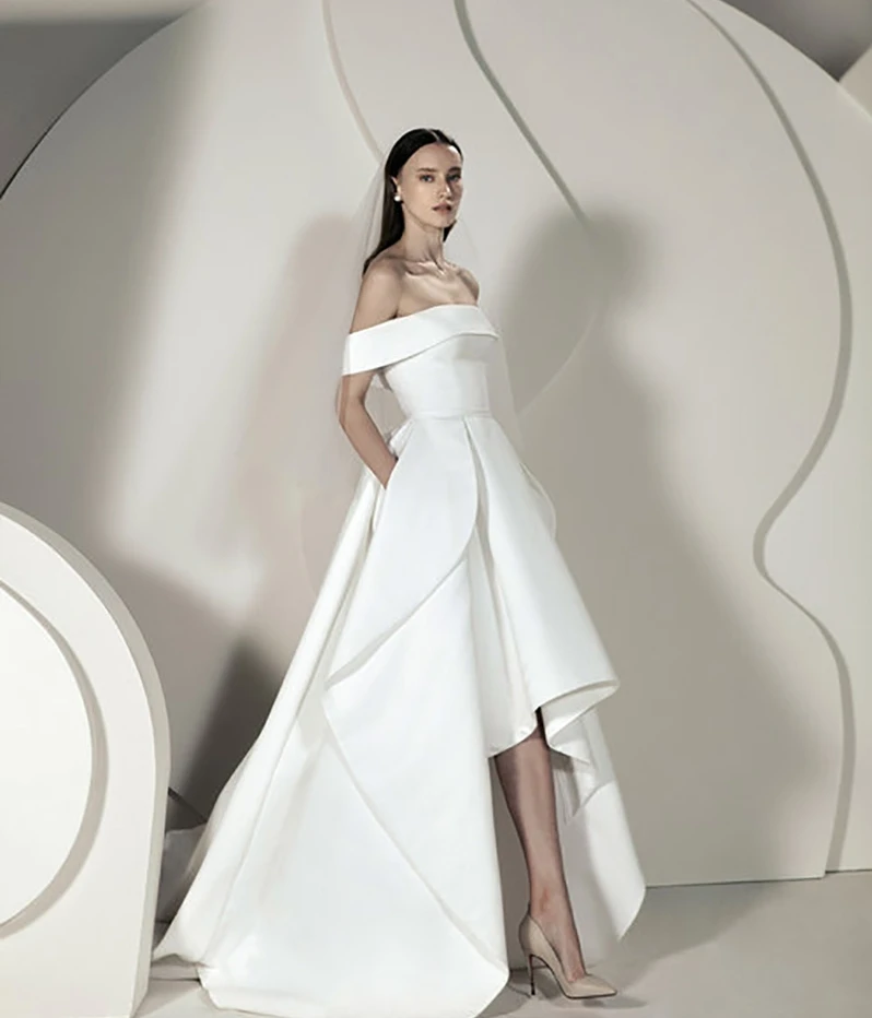 Женское атласное свадебное платье, элегантное платье с открытыми плечами и оборками, новинка 2023