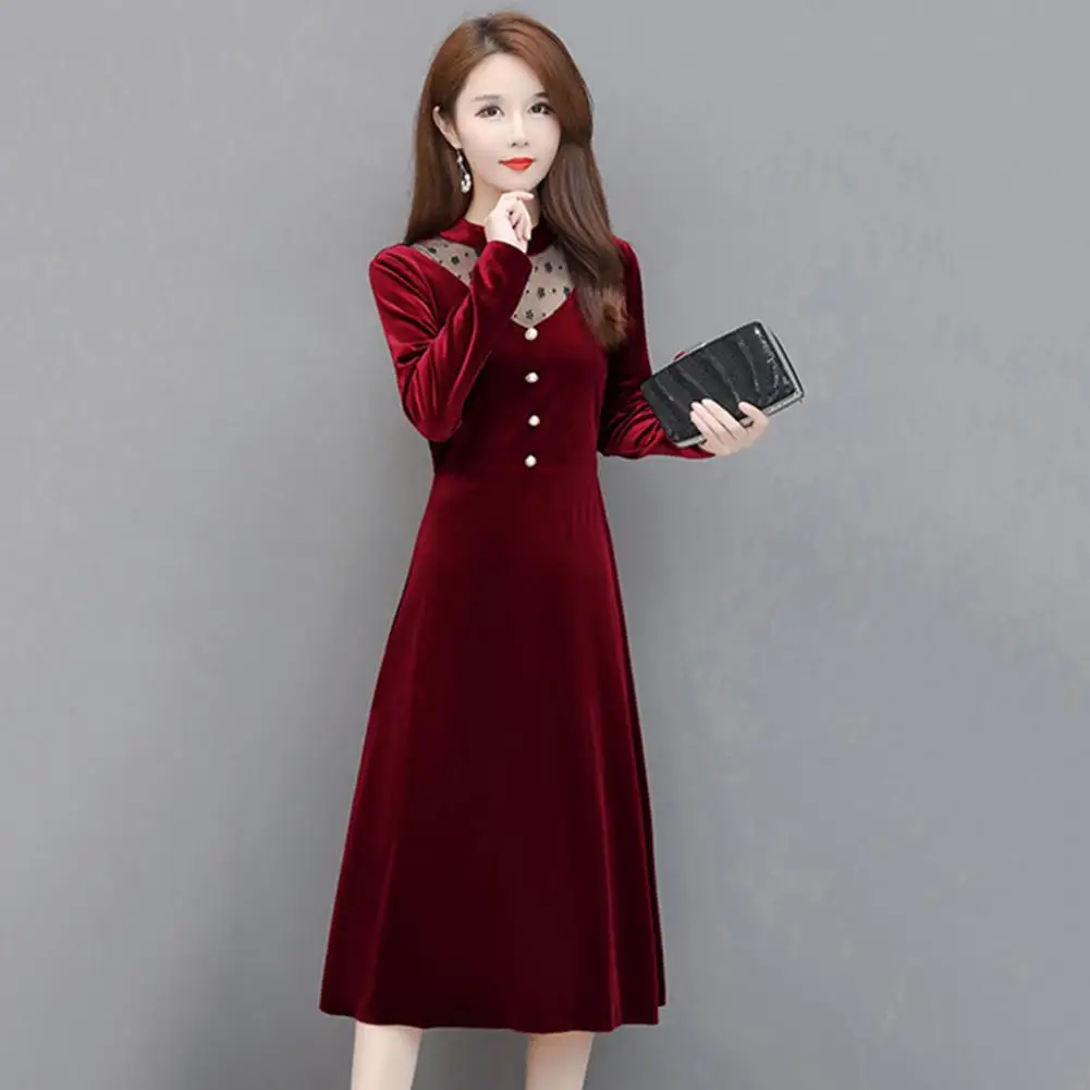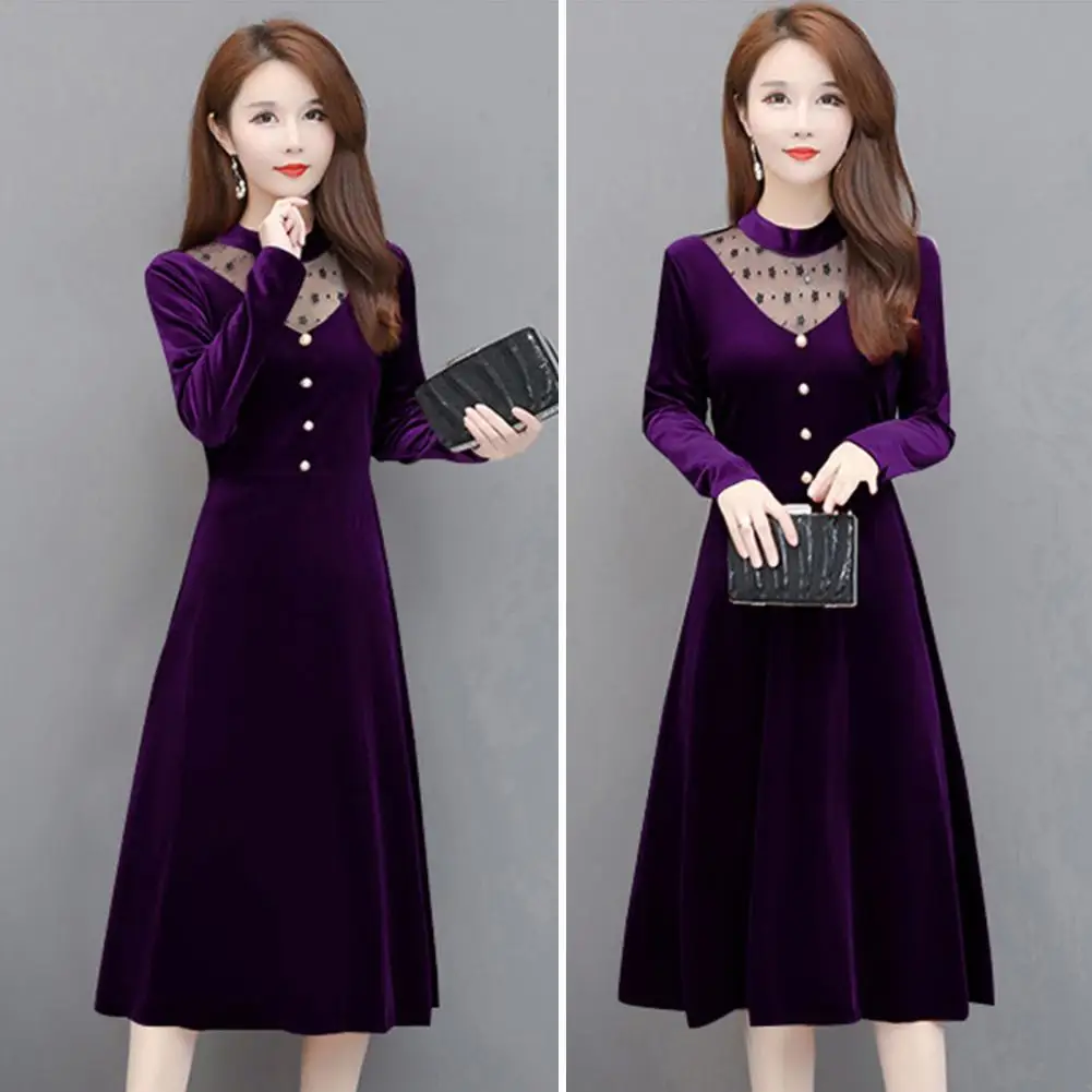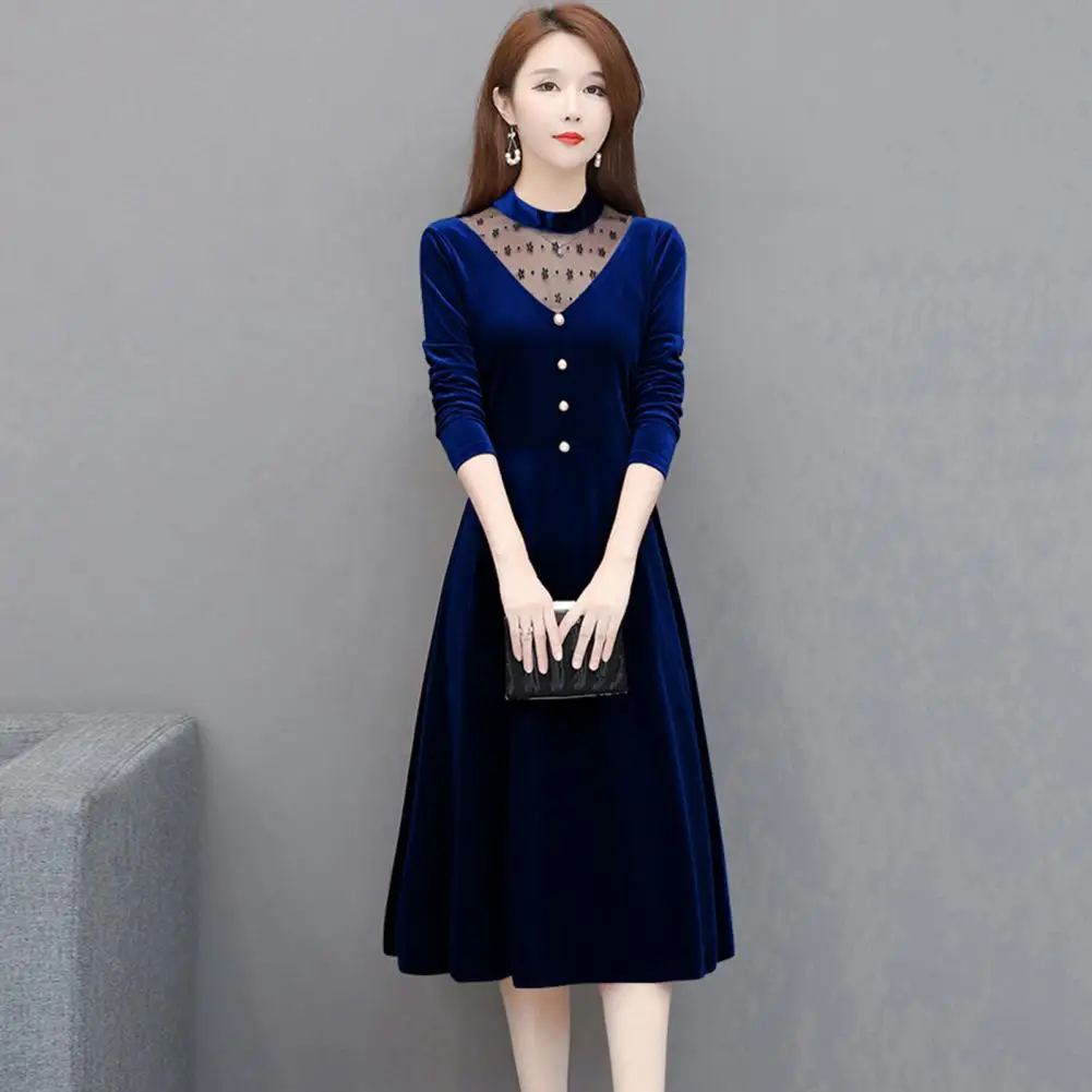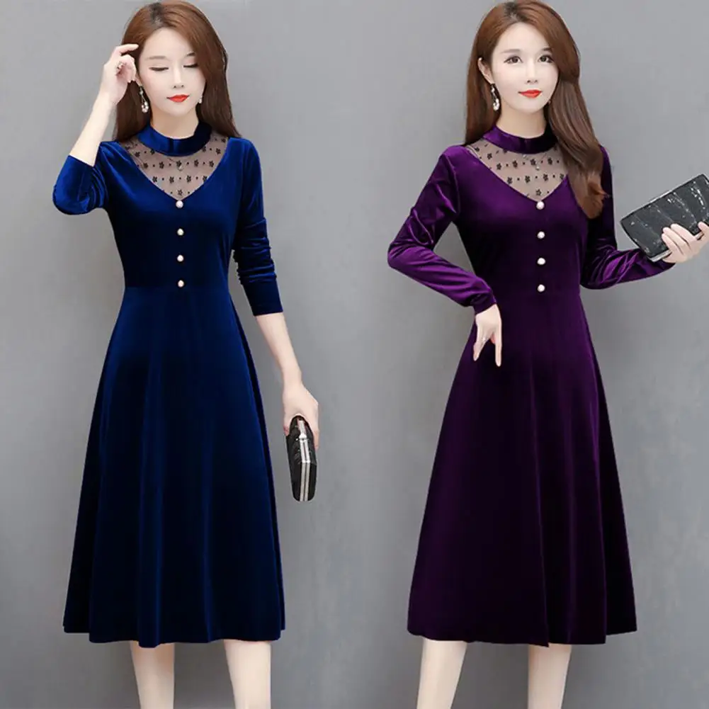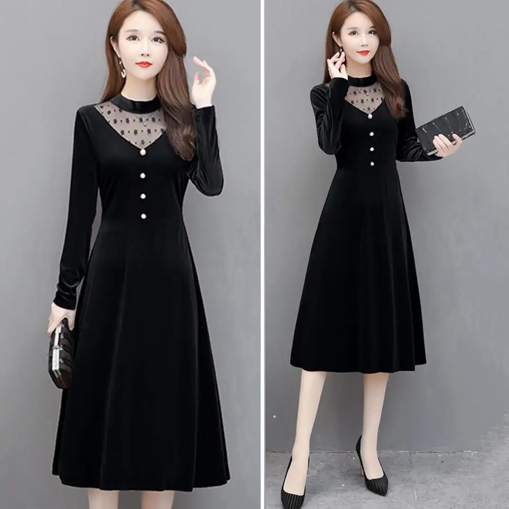 Женское бархатное офисное платье, элегантное бархатное платье-трапеция, офисное элегантное Сетчатое миди-платье с прострочкой и перфорацией