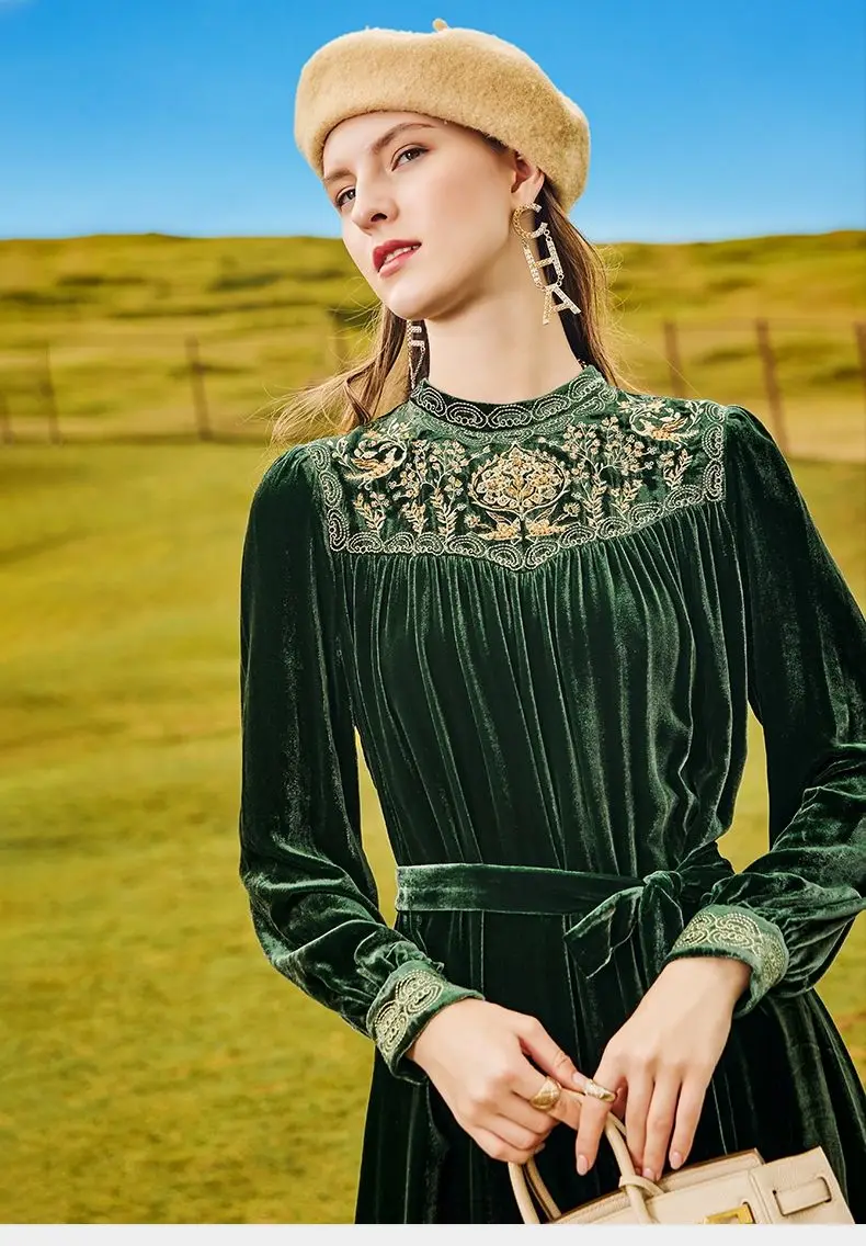 Женское бархатное платье до колен, с круглым вырезом и длинным рукавом