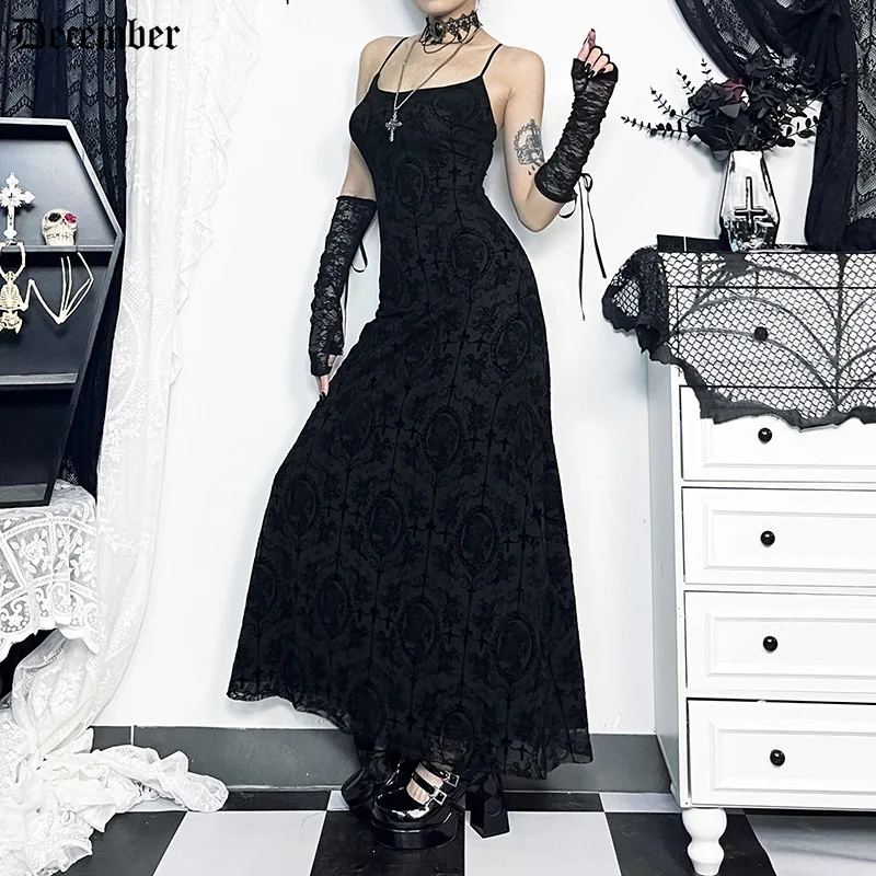 Женское бархатное платье на бретельках, облегающее платье макси без рукавов в готическом стиле