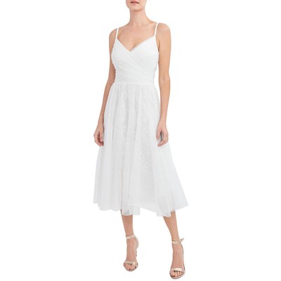 Женское белое кружевное платье до середины икры Aqua с пышной юбкой BHFO 3931, Off white