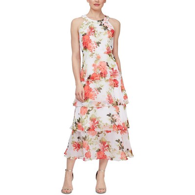 Женское белое многоярусное вечернее платье макси SLNY BHFO 0099, Ivory multi