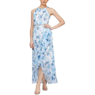 Женское белое шифоновое платье SLNY с расклешенной юбкой Petites BHFO 6025, Ivory/blue