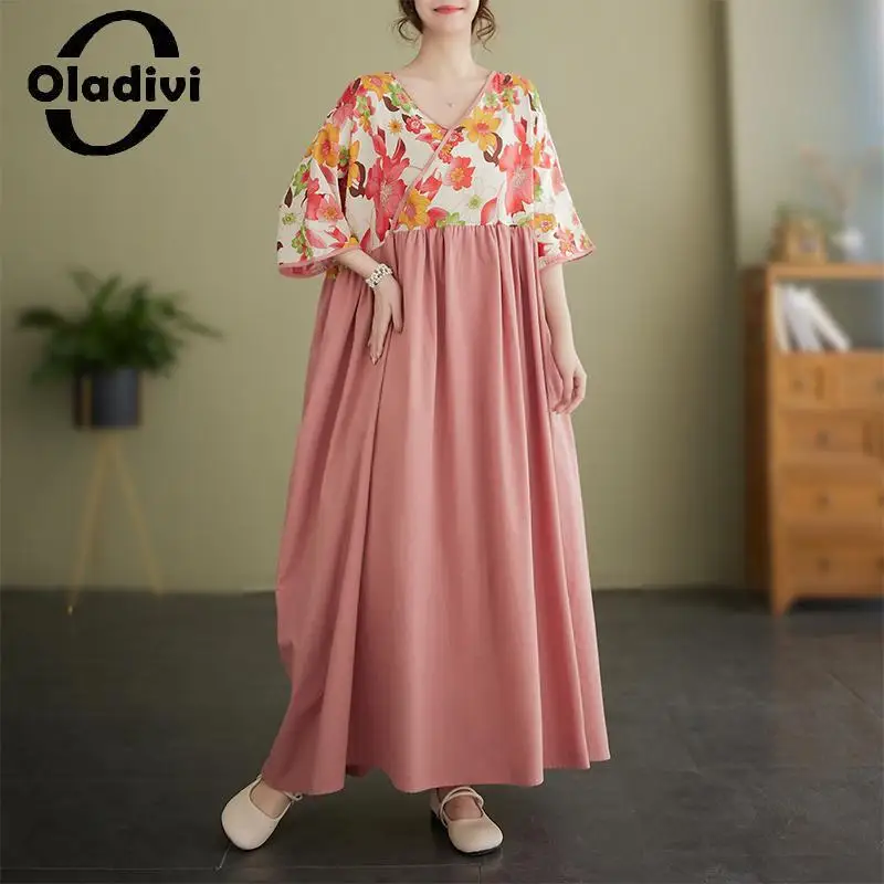 Женское богемное пляжное платье Oladivi L-8XL большого размера с модным принтом, Новинка лета 2024, свободные длинные платья большого размера в стиле бохо 1048