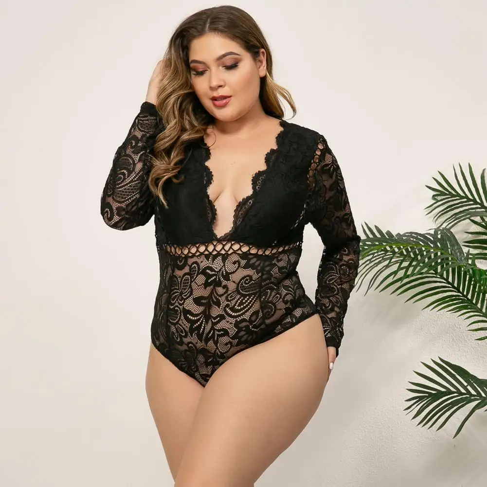Женское боди, прозрачное облегающее порнографическое тонкое боди с глубоким V-образным вырезом и цветочной вышивкой