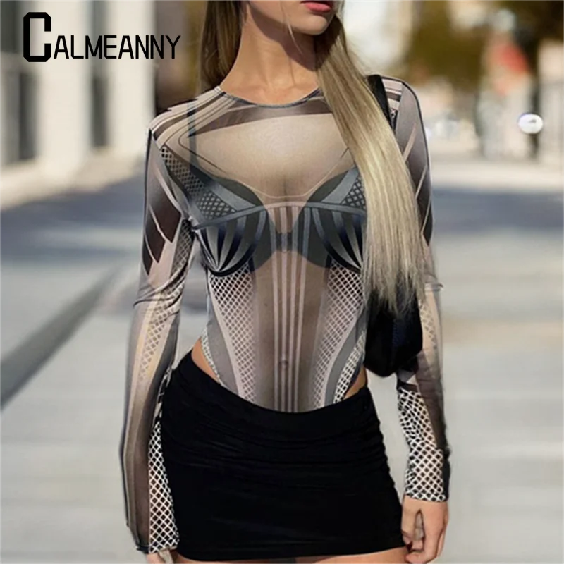 Женское боди с длинным рукавом и круглым вырезом, в стиле пэчворк