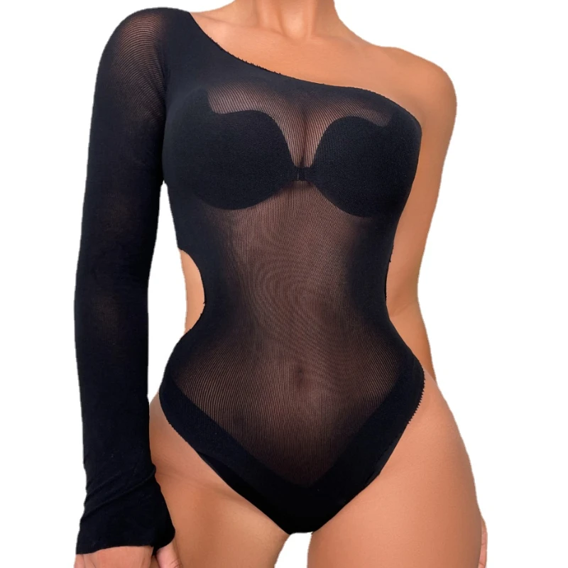 Женское боди с одним рукавом, однотонная Сексуальная экзотическая одежда, ажурное нижнее белье с открытой спиной, женское нижнее белье