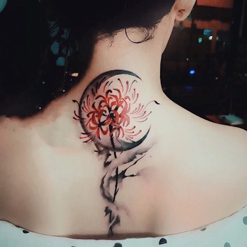 Petunia Moon Ink Style Temporary Tattoos Aesthetic Transfer Tattoo Body Art Waterproof Fake Tatoo Stickers for Woman Men