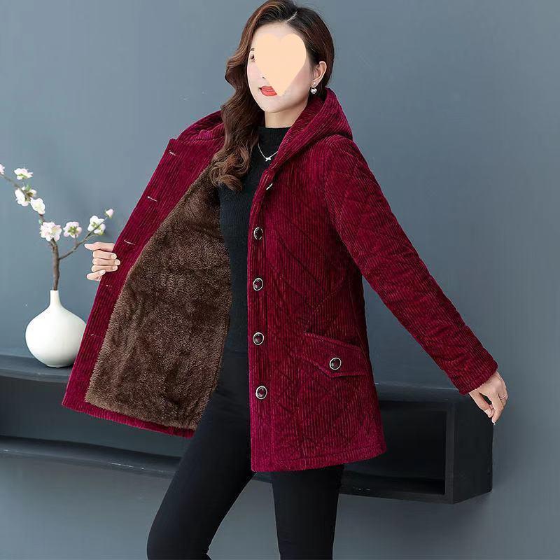 Женское вельветовое зимнее пальто, пуховик, зимняя новая длинная женская куртка выше колена с хлопковой подкладкой в корейском стиле, сохраняющая тепло L вино красного