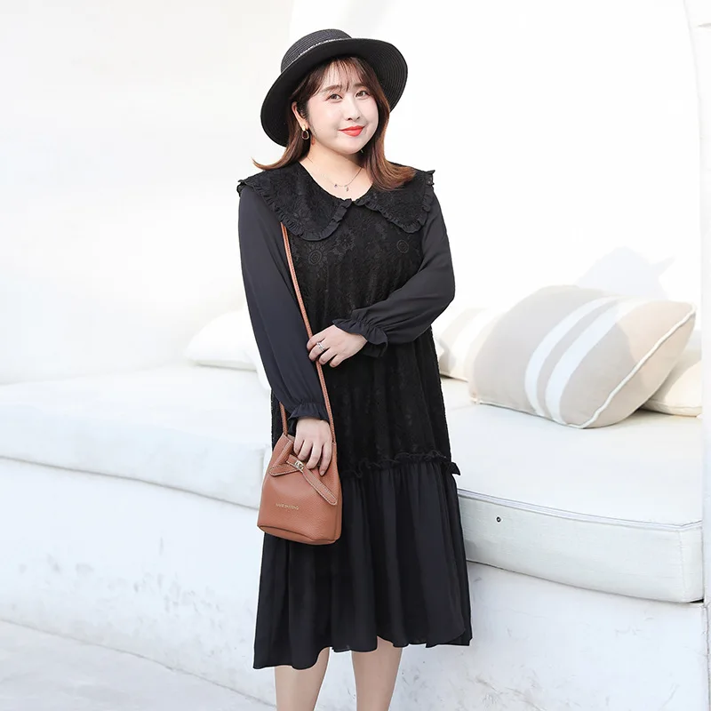 Женское весеннее шифоновое кружевное лоскутное платье размера плюс, Повседневное Платье До Колена, 100 кг