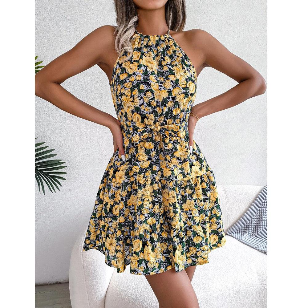 Женское весенне-летнее платье с рюшами и большим распашным воротником с бретелькой на шее XXL жёлтый