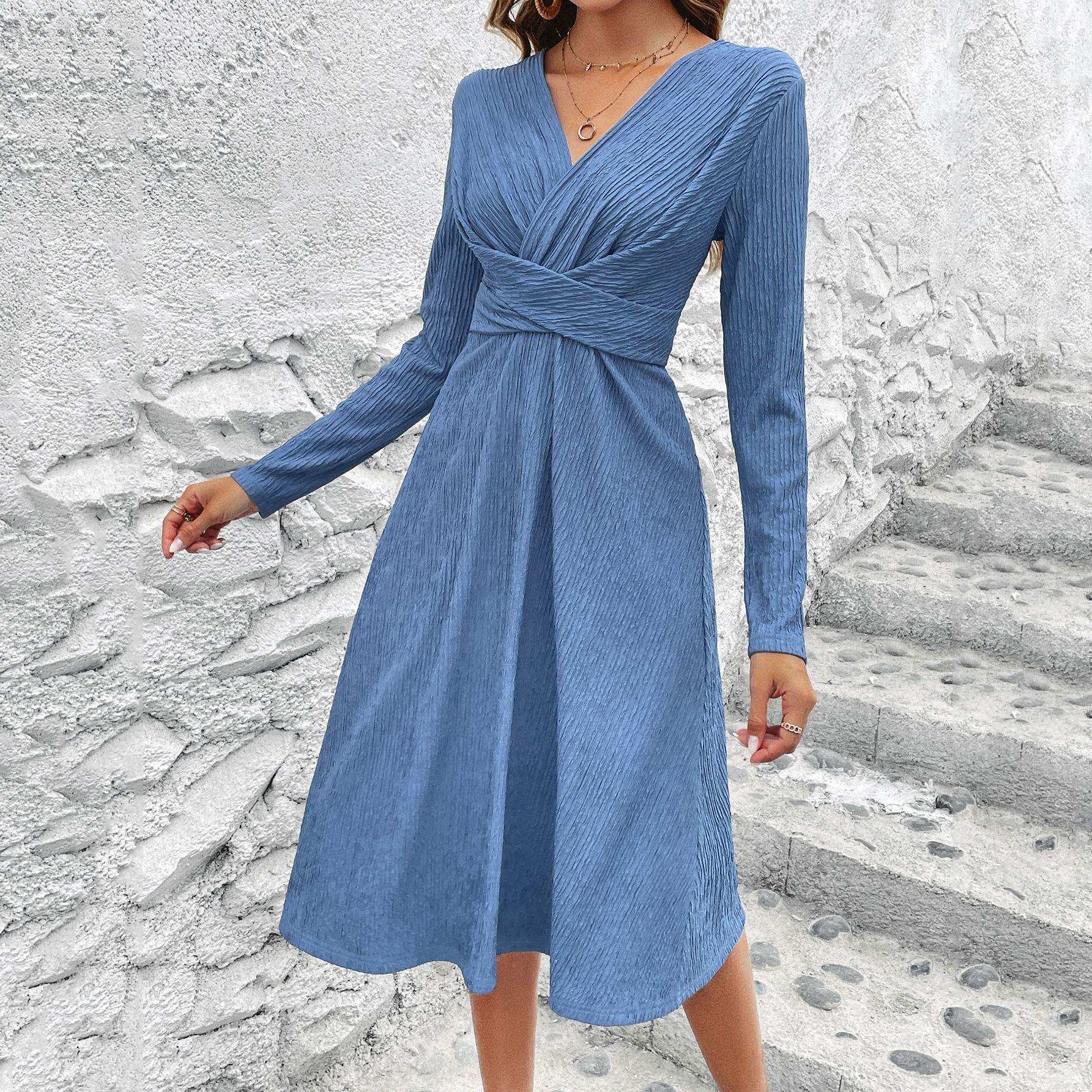 Женское весенне-осеннее цельное платье с длинными рукавами и v-образным вырезом, сплошное цветное платье длиной до колена L