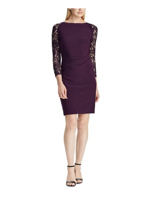 Женское вечернее облегающее платье RALPH LAUREN с вырезом выше колена и рукавами 3/4, Фиолетовый