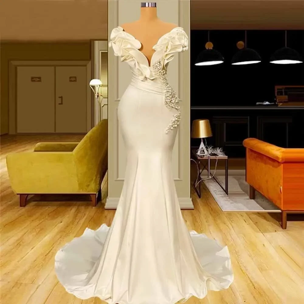Женское вечернее платье-Русалка Lvory, с V-образным вырезом и бусинами, Роскошные платья больших размеров для выпускного вечера, 2024