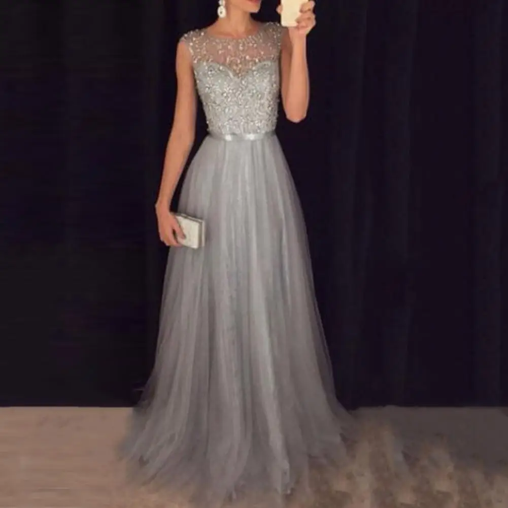 Женское вечернее платье, Сетчатое блестящее лоскутное платье без рукавов с узкой талией и блестками, платье до пола для выпускного вечера, б...