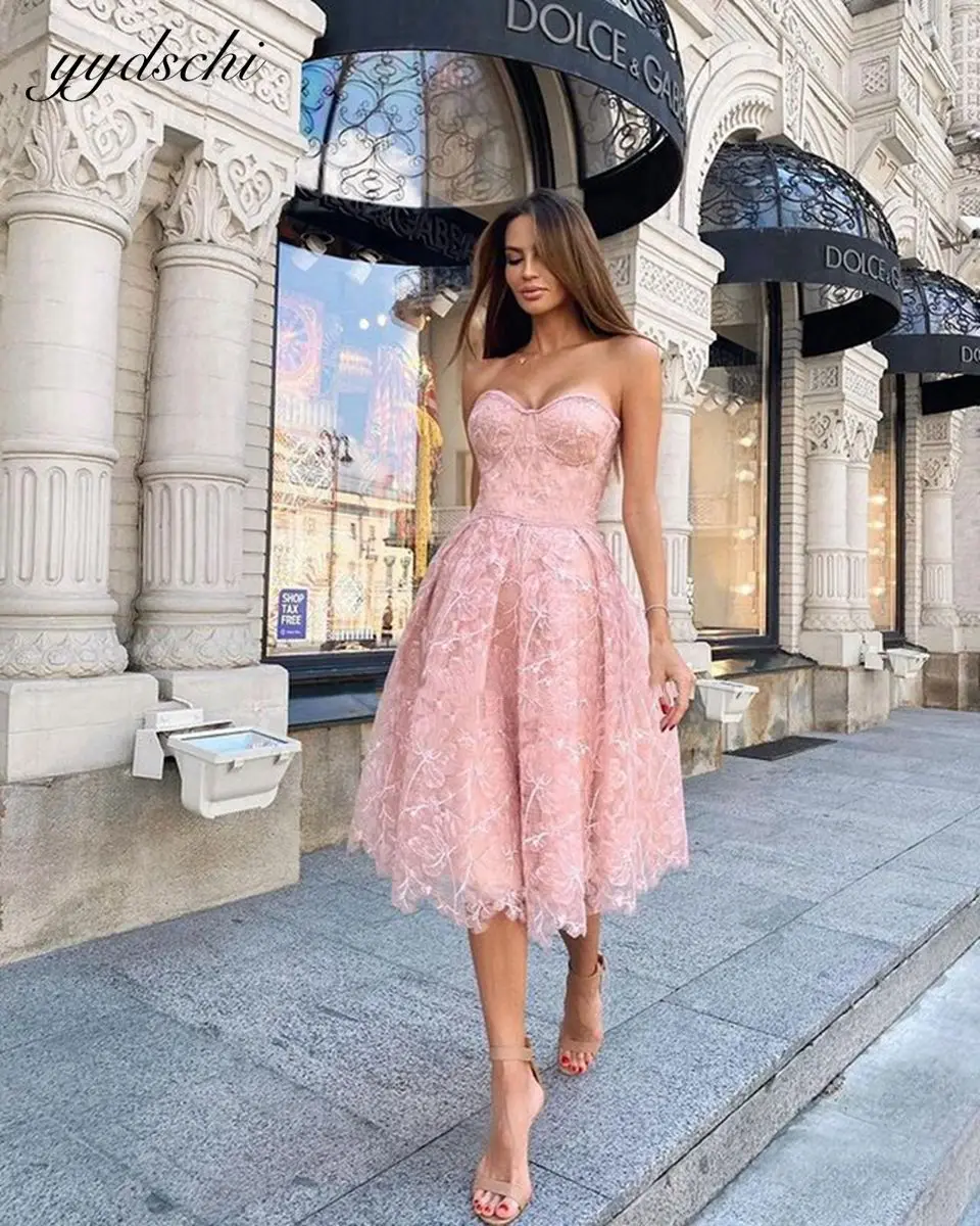 Женское вечернее платье без бретелек, розовое короткое платье с открытой спиной и аппликацией, для выпускного вечера, 2022