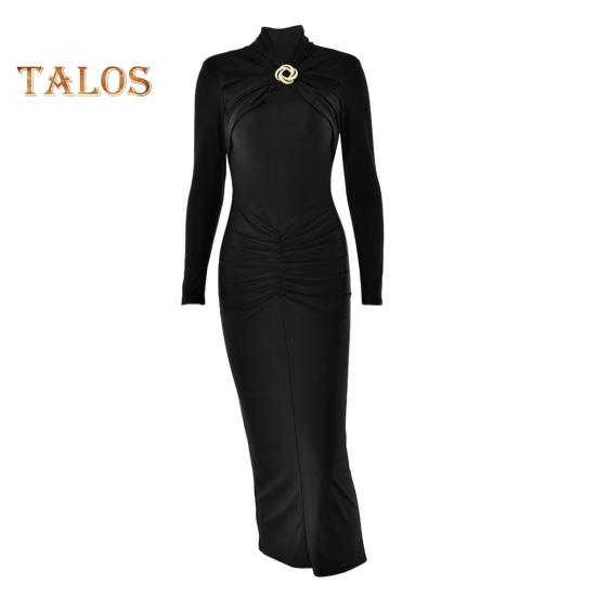 Женское вечернее платье, облегающее, с металлической пряжкой, эластичное, чистого цвета, миди-платье с длинным рукавом, выпускное платье для вечеринки M чёрный