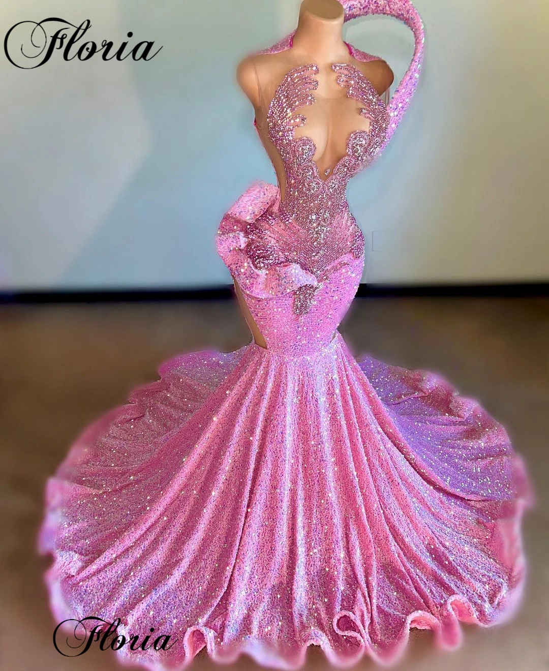 Женское вечернее платье-русалка, розовое бархатное платье с блестками, расшитое бисером, для выпускного вечера, 2023