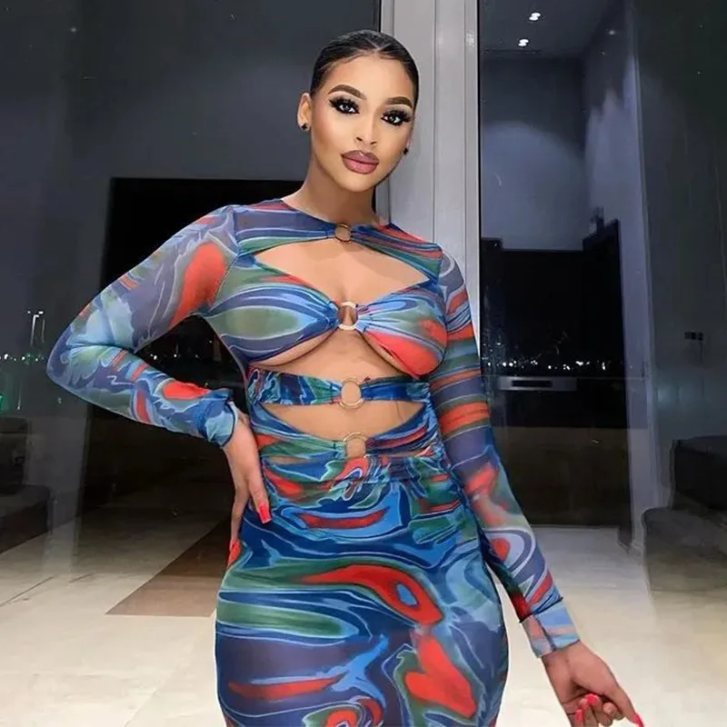 Женское вечернее платье с длинным рукавом, Ажурный наряд для вечеринки или клуба на день рождения, 2022