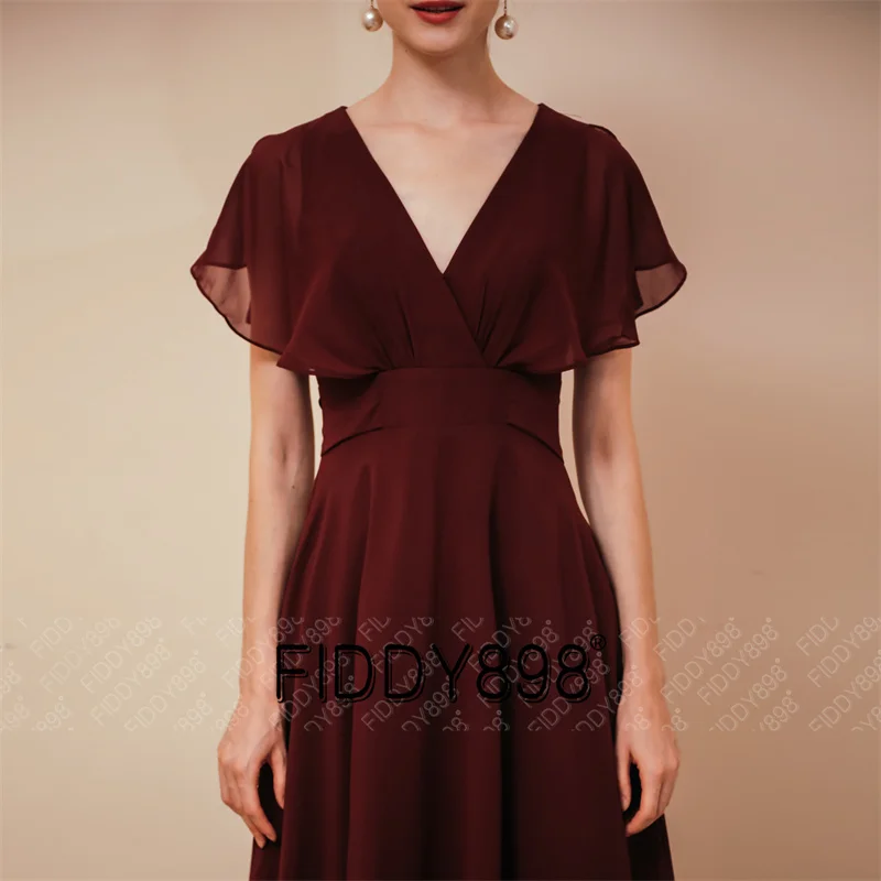 Женское вечернее платье с коротким рукавом, V-образным вырезом и открытыми плечами
