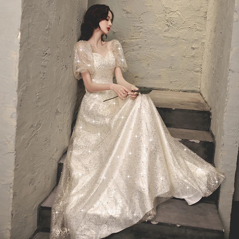 Женское вечернее платье с пышными рукавами, длинное платье принцессы с квадратным вырезом, простые элегантные официальные платья