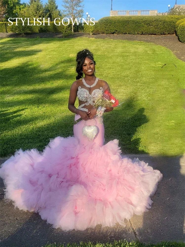 Женское вечернее платье с юбкой-годе, длинное розовое платье с круглым вырезом, расшитое бисером, для дня рождения
