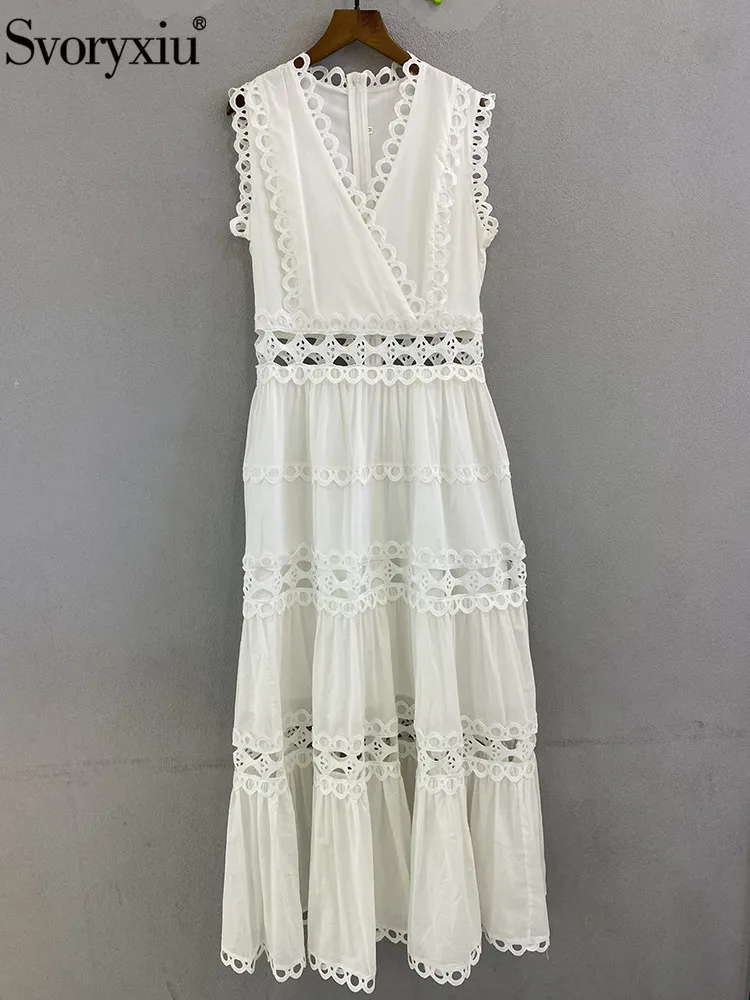 Женское винтажное длинное платье Svoryxiu, белое платье без рукавов с оборками и высокой талией, вечерние платья на лето 2019